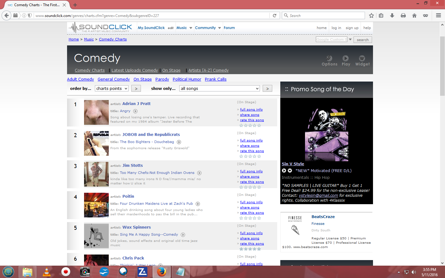 Meanwhile, in other news, out in Internet land, one of my solo concert performances from back in the late 1970's made number 1 on a random chart. Proof below. Comedy indeed....